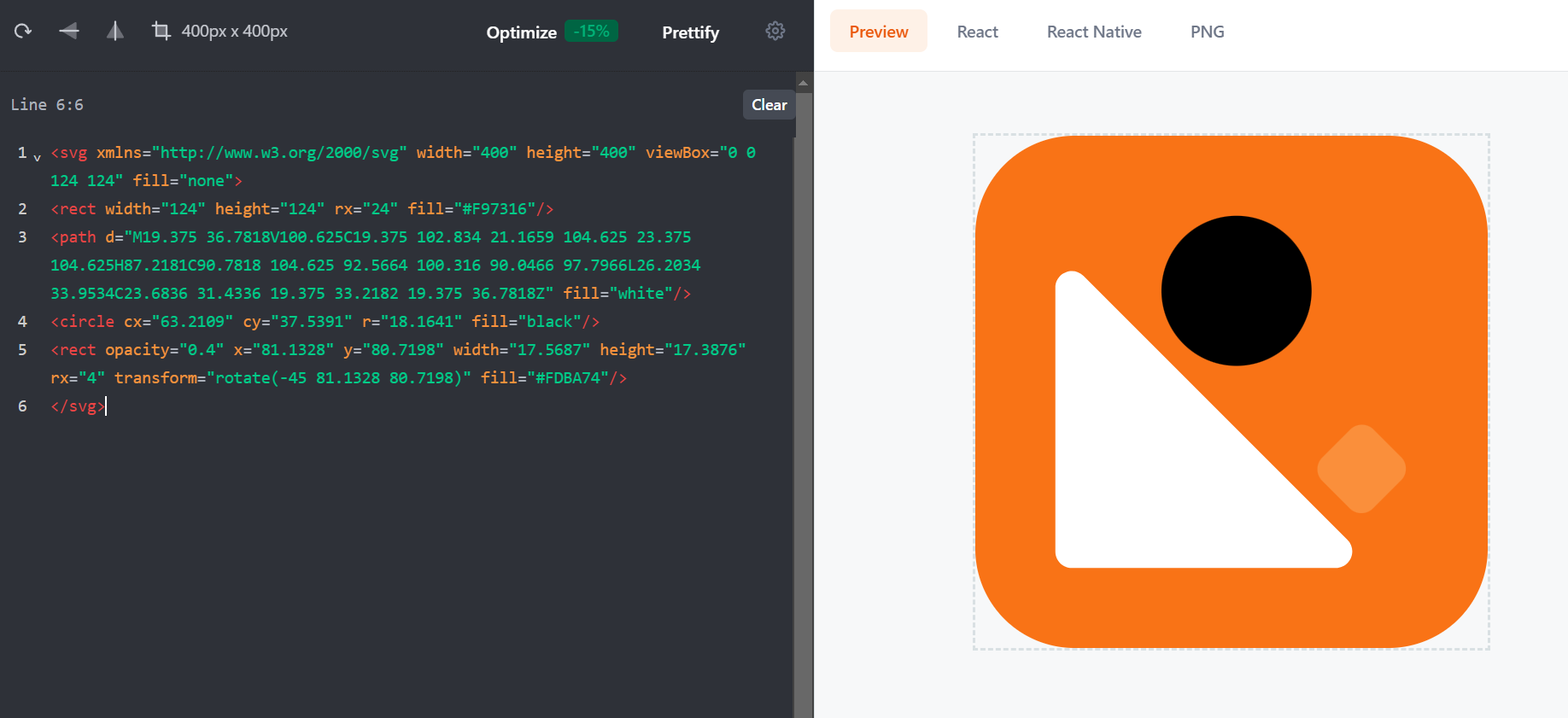 In SVG sind die Grundelemente wie Rechtecke und Kreise relativ einfach verständlich. Aber wir haben auch Pfade gesehen, die im Code von SVG schwer zu verstehen sind - wie z.B. das abgerundete, weisse Dreieck links unten auf svgviewer.dev.