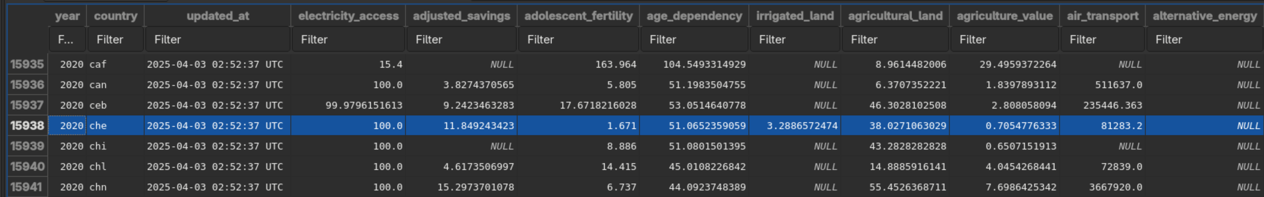 conn = sqlite3.connect('world_bank_indicators.db') cursor = conn.cursor()