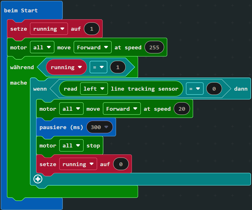 - Zusatz: Beenden Sie das Programm, wenn der Roboter 300ms langsam gefahren ist.