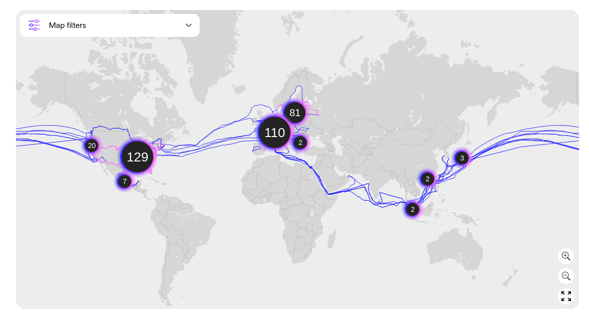 Das erreichen sie durch Settlement-Free Peering: Die grossen Provider verbinden sich untereinander kostenlos, weil beide Seiten gleichermassen profitieren. Hier ein Beispiel des Netzwerkes des Tier-1-Providers Arelion, das Sie hier interaktiv anschauen können.