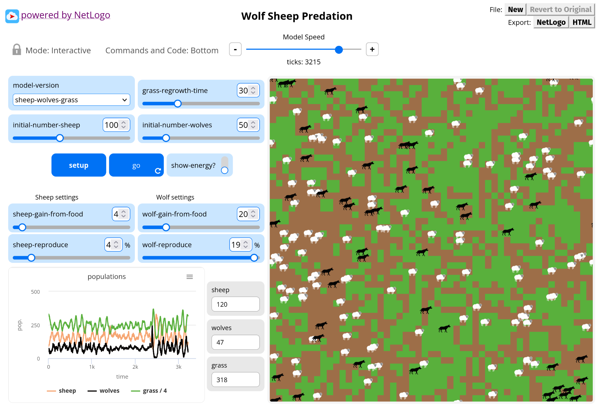 - Stellen Sie sicher, dass Sie das sheep-wolves-gras-Modell ausgewählt haben