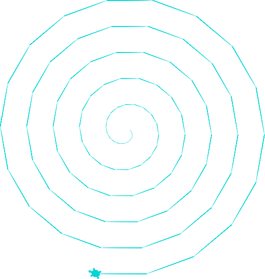 Lösung mit Videoerklärung 📺for i in range(100): # Anzahl der Schritte eva.forward(i) # Abstand wird schrittweise grösser eva.right(20) # Konstanter Drehwinkel