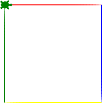 Sie sind dran!Schreiben Sie folgendes Programm um, um ein Quadrat mit verschiedenfarbigen Seiten zu erzeugen. Beachten Sie, dass ich mit