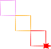 Lösungimport turtle eva = turtle.Turtle() quadratfarben = ["violet", "orange", "red"] for quadratfarbe in quadratfarben: eva.color(quadratfarbe) for seite in range(6): eva.forward(50) eva.right(90) eva.right(180)